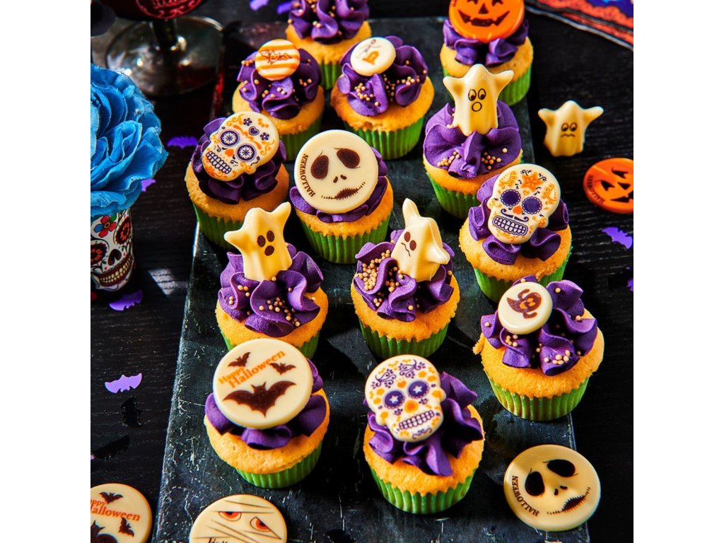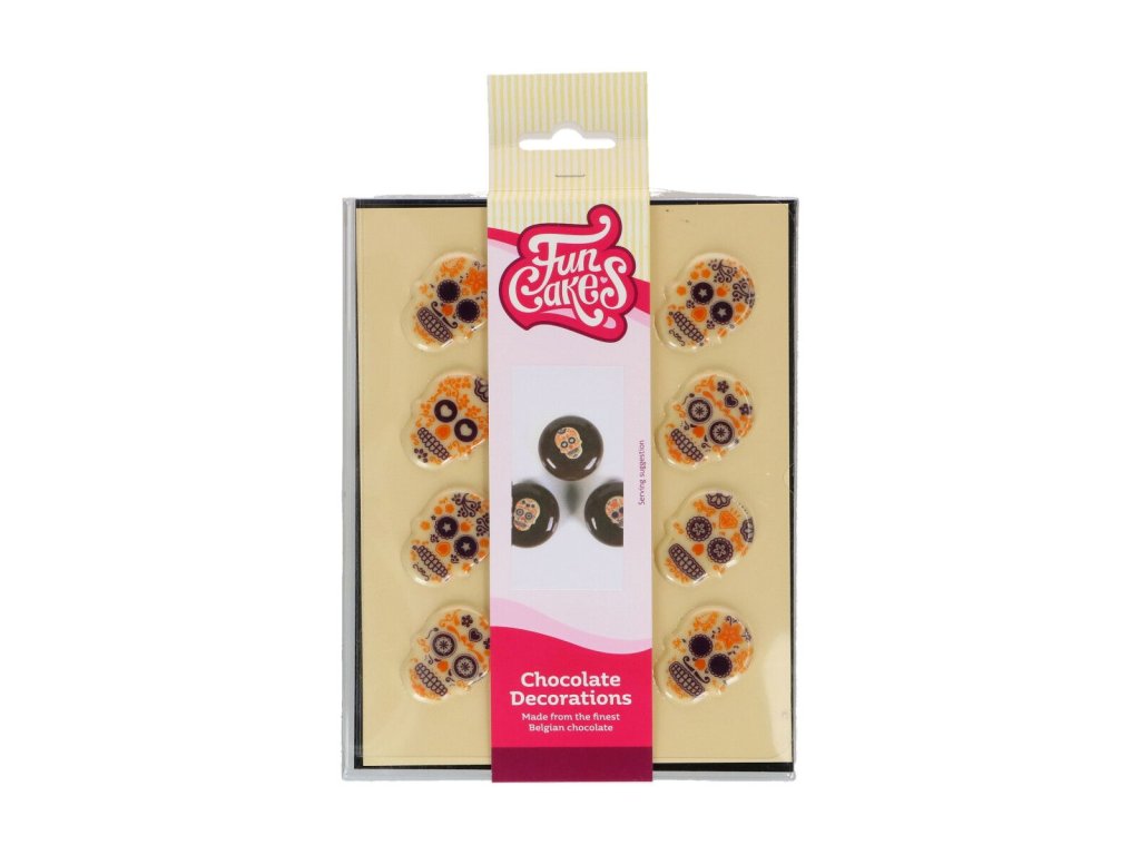 Oslavte Den mrtvých s těmito čokoládovými dekoracemi FunCakes ke Dni mrtvých. Tyto pravé belgické čokolády mají skvělou chuť a jsou perfektním doplňkem jakéhokoli výtvoru. Dodejte svým dekoracím zářivý nádech s těmito čokoládami ve tvaru lebky. Ideální také pro halloweenské dekorace.