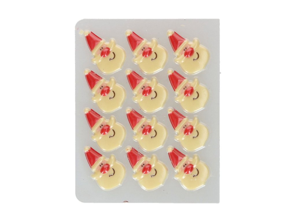 Složení: cukr, kakaové máslo, sušené odstředěné mléko, sušené mléko (bezvodé), emulgátor: E322 (slunečnicový), odstředěné kakaové prášek, aroma (vanilka), barvivo: E172, E101, E120.