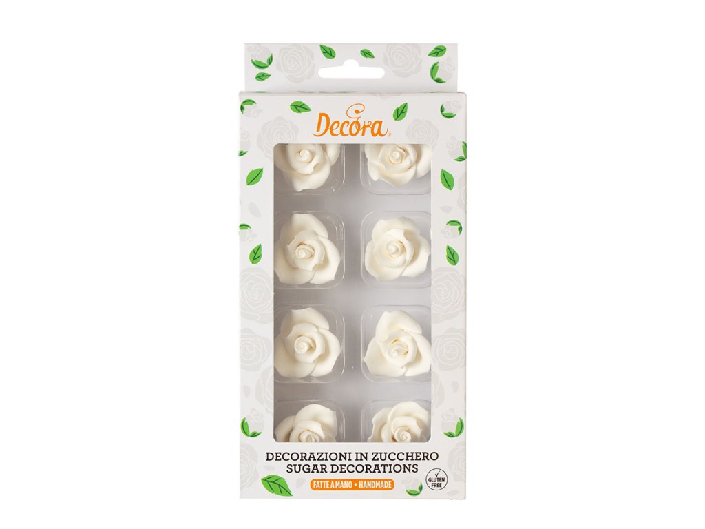 Cukrové dekorace Růže střední bílé Decora, 8ks
