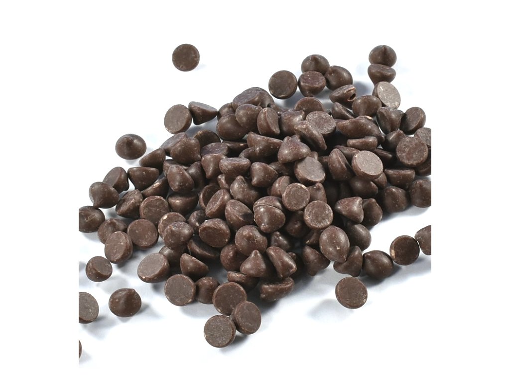 Hořká čokoláda 71% v drobných pecičkách.