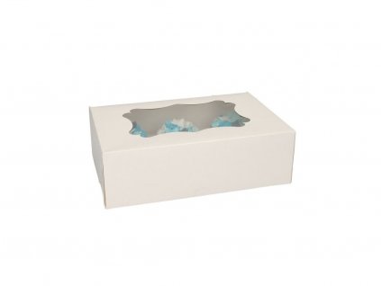 Krabička je vhodná pro 12 mini košíčků a je ideální k přepravě. Bílá krabice je vyrobena z pevné lepenky a má praktické okénko.