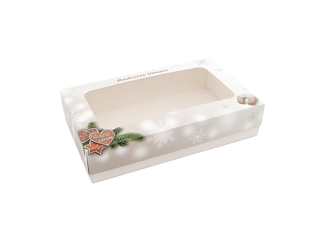 Dvoudílná krabice s oknem vhodná na vánoční cukroví.