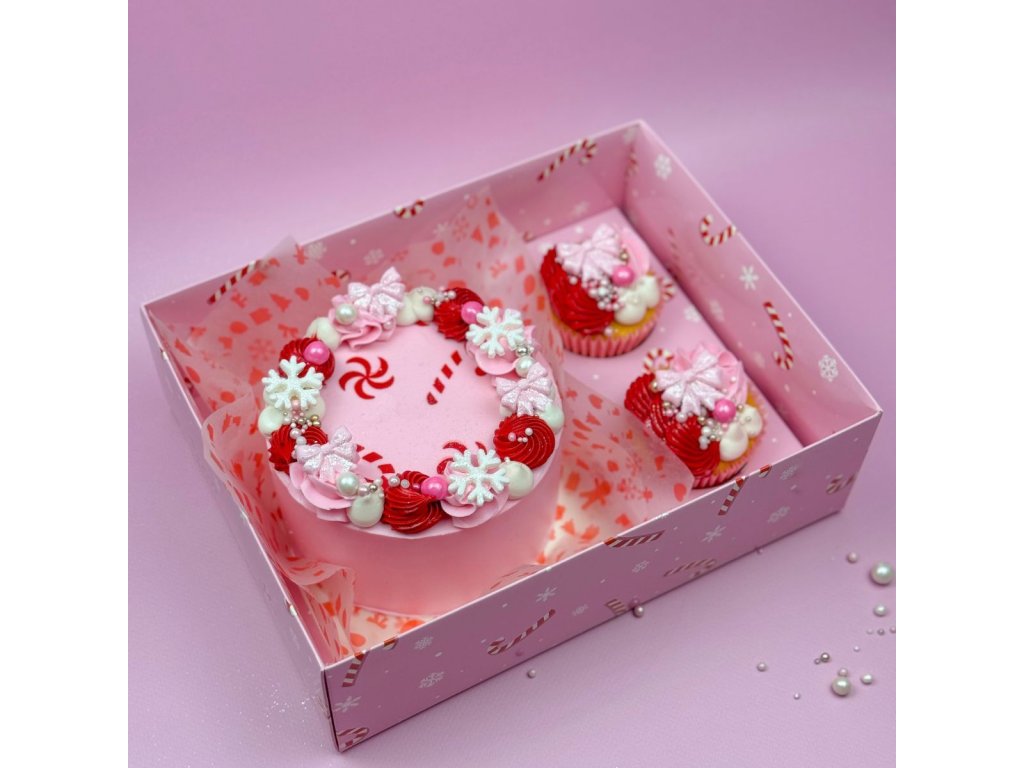 Každá krabice má sváteční růžový candy motiv, který vašim dobrotám dodá nádech prázdninové nálady. Díky dvěma krabicím v každém balení můžete snadno skladovat a přepravovat své košíčky a dobroty.