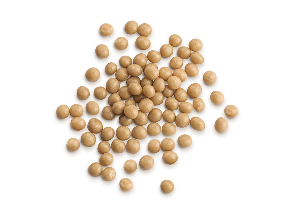 Extrudované kuličky +-4 mm z rýžové mouky obalené v mléčné čokoládové polevě.