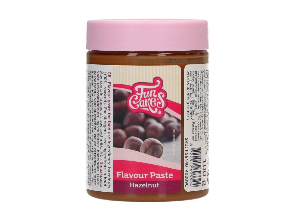 Tato ochucovací pasta s příchutí lískového oříšku FunCakes má lahodnou ovocnou příchuť a jsou ideální pro doplnění chuti krému, zmrzliny a různých náplní.