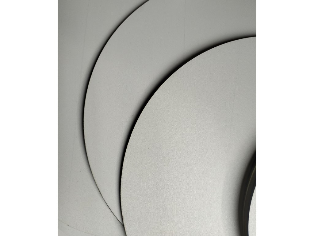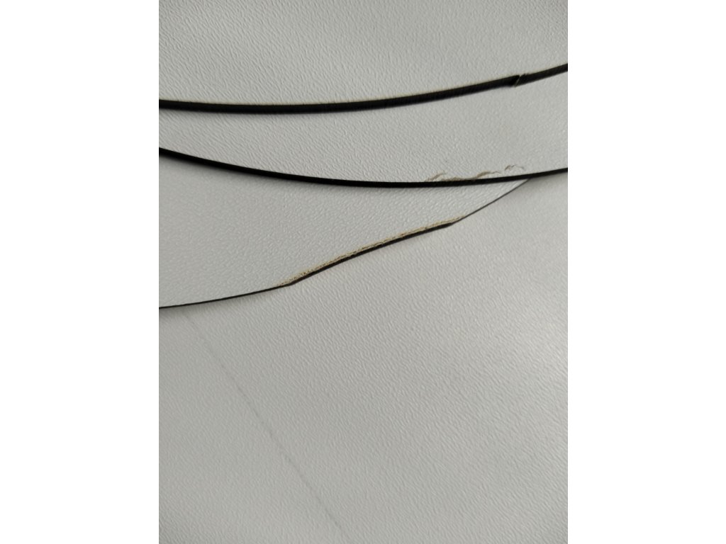 Lakovaná bílá plocha, hrana v tmavě hnědé barvě, spodní strana hnědá