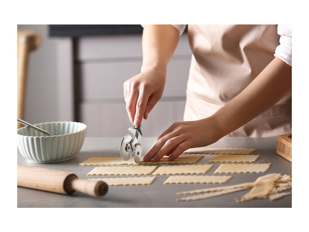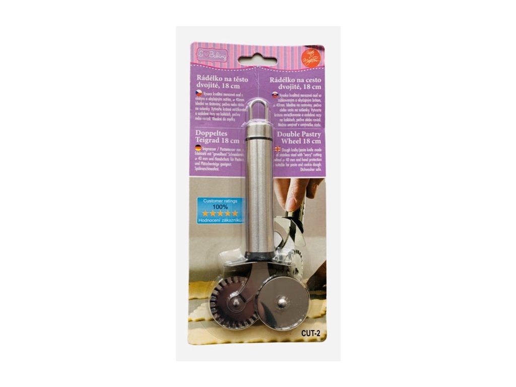 Rádýlko je vyrobeno z vysoce kvalitní nerezové oceli. Disponuje dvěma ostřími o průměru 40 mm. Jedno ostří je hladké a druhé vlnité. Rádýlko najde využití při výrobě těstovin, pečiva nebo sušenek. Vytvoříte s jeho pomocí efektní mřížkování a ozdobné řezy. Rádýlko je možné umýt v myčce.