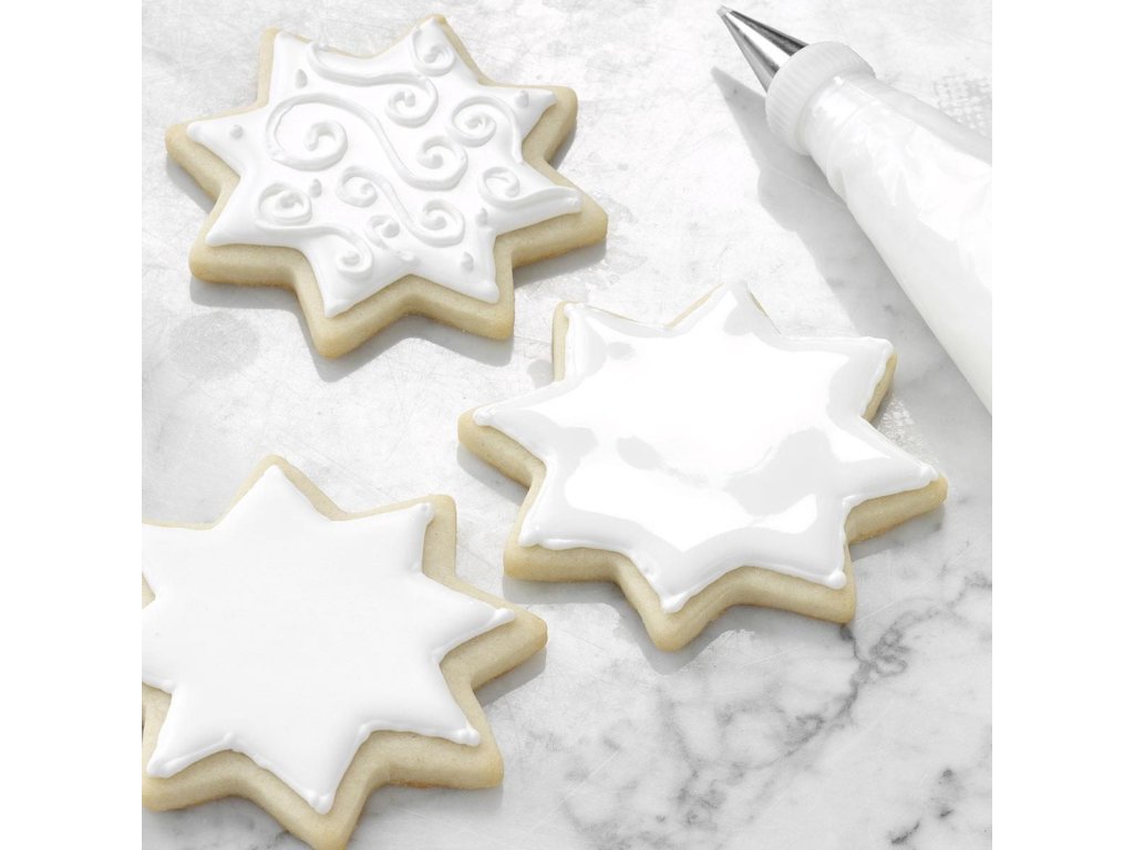 Glazura sněhově bílá a lze jí dle potřeb barvit gelovou, tekutou nebo prachovou barvou.