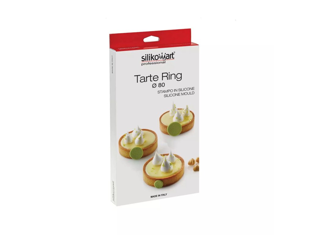 Sada Tarte Ring Round by Silikomart Professional je vyrobena z termoplastického kompozitního materiálu vhodného pro pečení, který byl vyvinut pro výrobu tartaletky o průměru 80 mm.