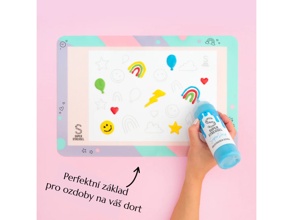 Všestranný pomocník pro váš svět pečení! Tato silikonová podložka je perfektním základem pro vytváření vlastních ozdob na dorty s technologií SuperDrip. Díky nepřilnavému efektu se ozdoby na dorty velmi snadno odstraňují. Protože je SuperMat průhledná, můžete pod ni jednoduše umístit šablony.
