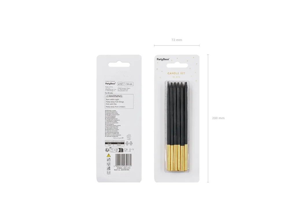 Svíčky narozeninové černé se zlatým lemem 14cm, 12ks PartyDeco