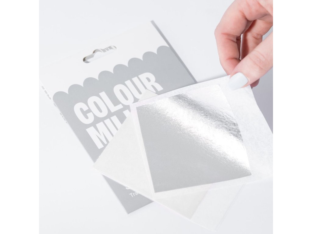 Přenosový stříbrný list Colour Mill Edible Leaf Silver je jemný plátek z pravého jedlého stříbra, ideální pro luxusní vzhled vašich pečených výtvorů. Je netoxický a zcela bezpečný k jídlu, dodává okouzlující vzhled dortům, sušenkám, čokoládám, makronkám a všem vašim oblíbeným pochoutkám.