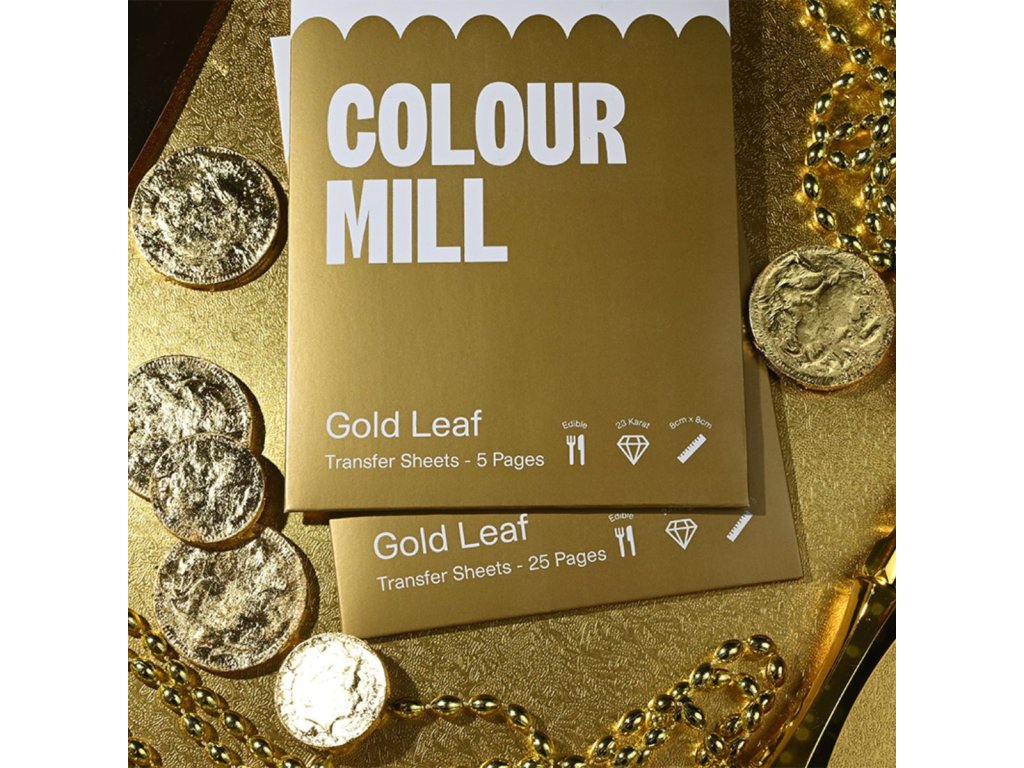 Color Mill Transfer z jedlých zlatých listů je jemný plátek z 23karátového jedlého zlata, ideální pro luxusní vzhled vašich pečených výtvorů. Je netoxický a zcela bezpečný k jídlu, dodává okouzlující vzhled dortům, sušenkám, čokoládám, makronkám a všem vašim oblíbeným pochoutkám.