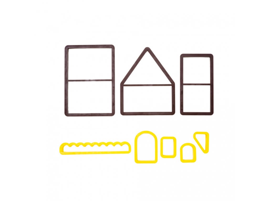Sada 8 plastových vykrajovátek, ideální pro výrobu klasického marcipánového domu nebo perníkové chaloupky, farmy nebo kostela. Ideální pro výrobu sušenek a sladkých, slaných, čokoládových a tvarovatelných hmot. Sada obsahuje brožuru s receptem a postup krok za krokem.