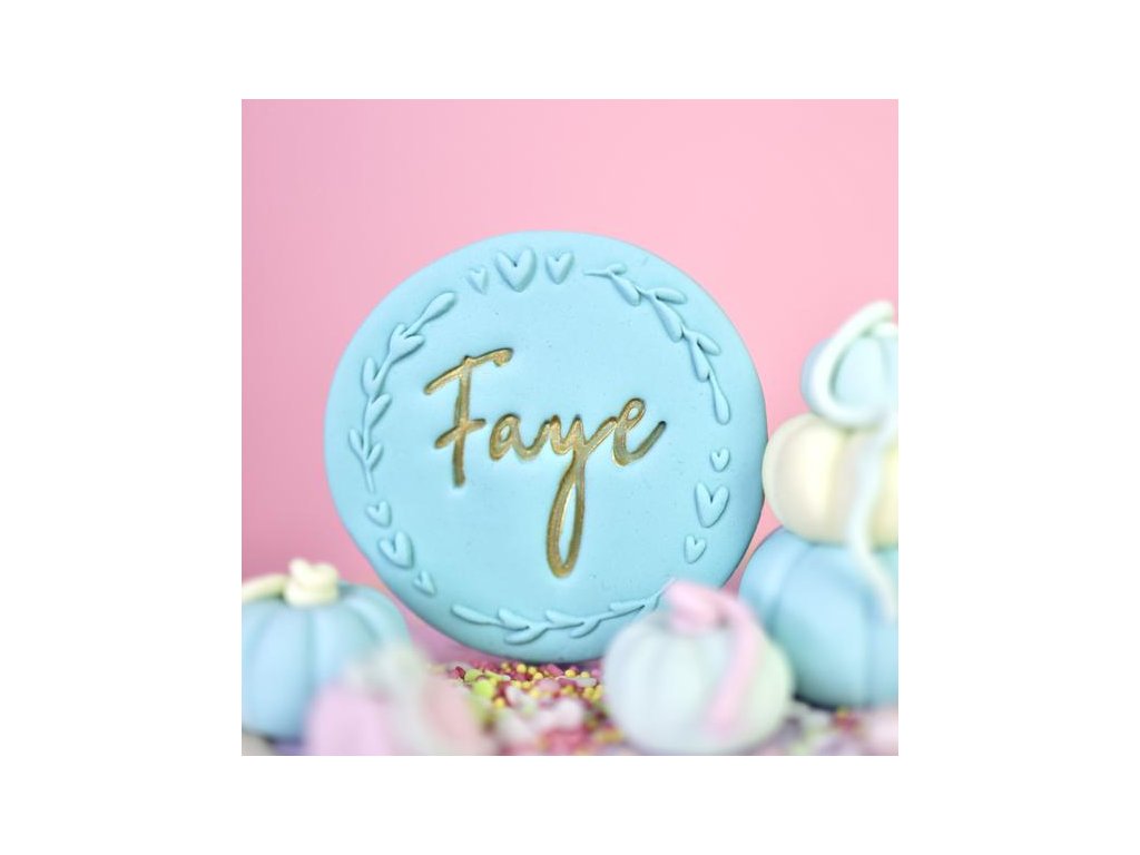 Písmenko vyjmete z obalu pomocí malého kousku fondánové hmoty. Můžete je před otisknutím položit na podložku Sweet Stamp, která se pořizuje zvlášť, nebo je vytlačíte jednotlivě. Vytlačenou plochu lze vyplnit barvou
