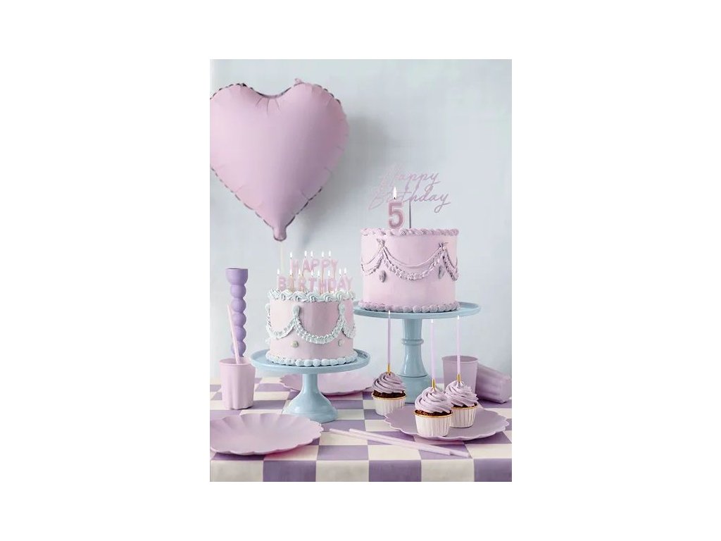 Akrylová ozdoba na dort „Happy Birthday“ v matné fialové barvě