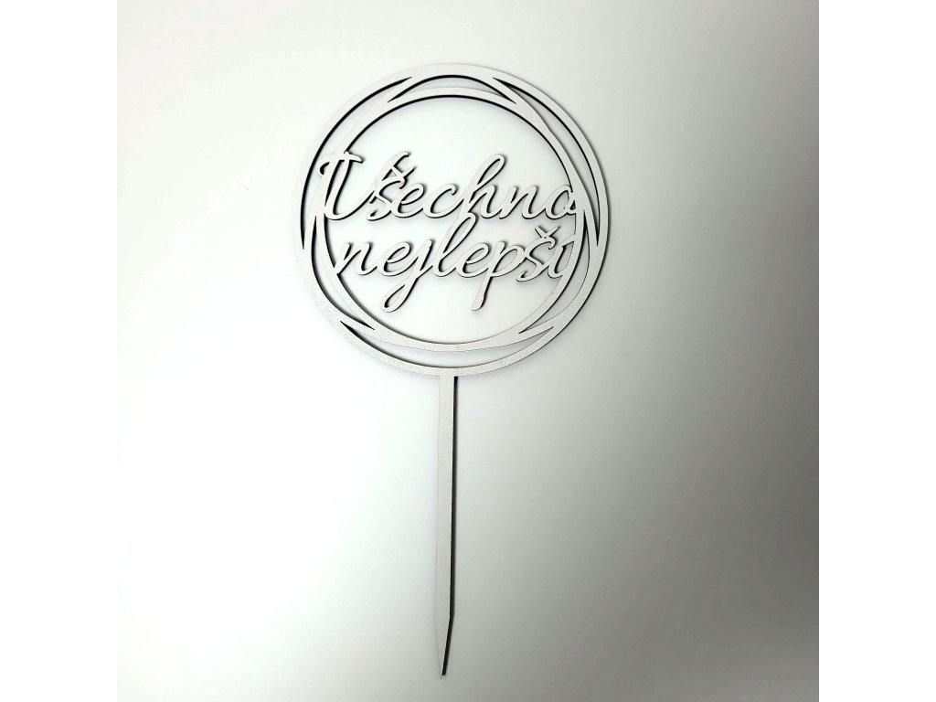 Zápich Všechno nejlepší bílý IV. dřevěný